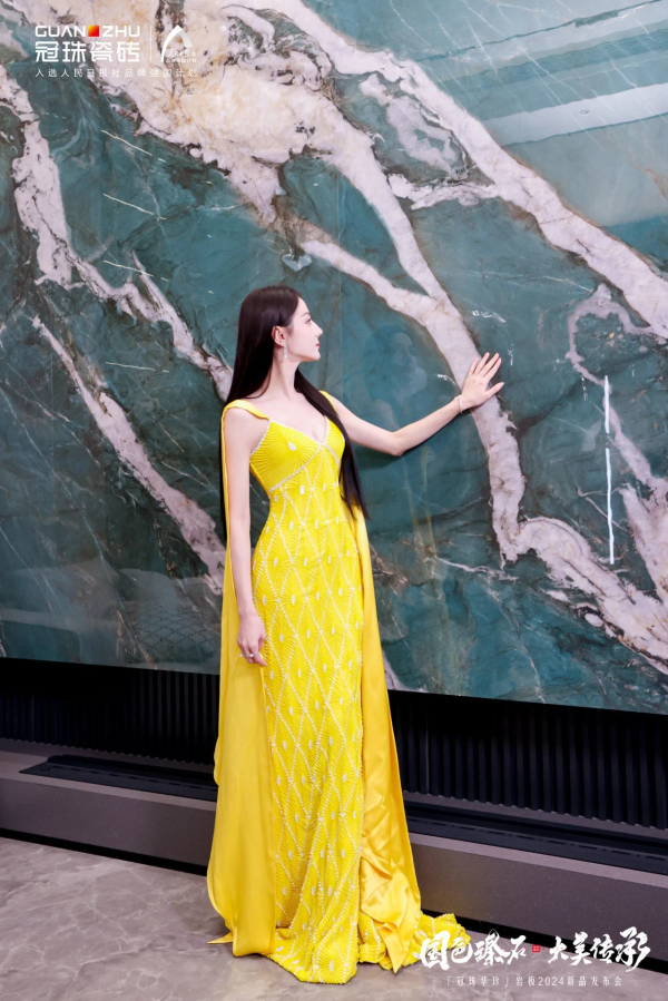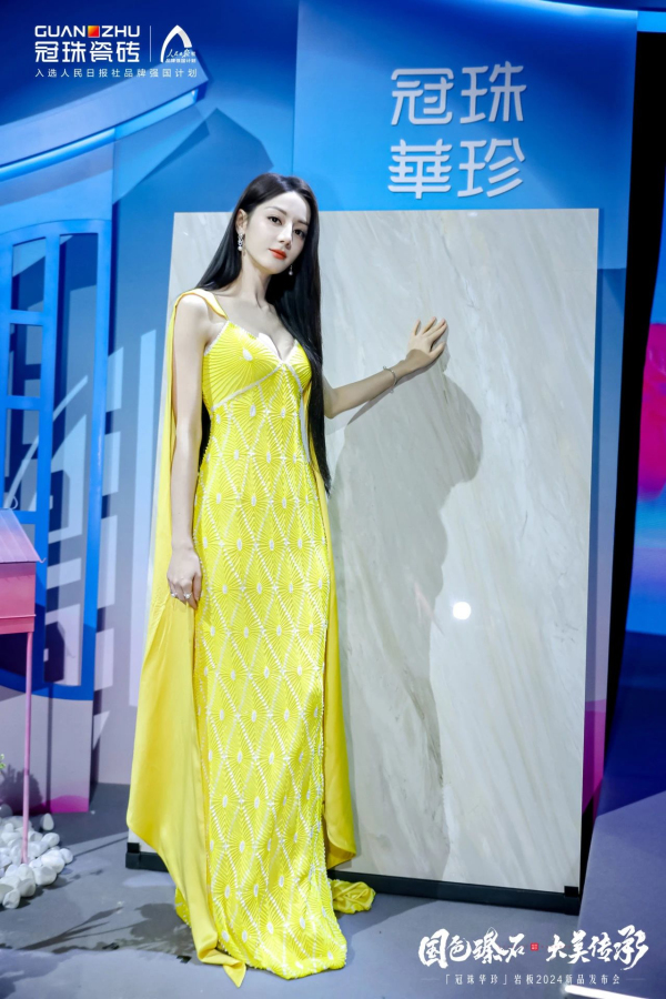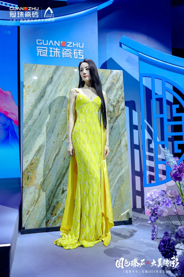 冠珠瓷磚品牌代言人迪麗熱巴身穿金黃色典雅高定禮服亮相活動(dòng)現(xiàn)場(chǎng),內(nèi)斂高貴,美艷動(dòng)人。在探店上海冠珠旗艦總店的過(guò)程中,其優(yōu)雅奢華的形象與冠珠華珍大美國(guó)色大美同框,相偕相融。