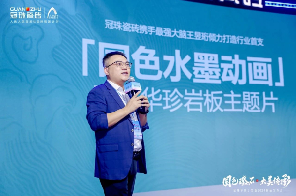 發(fā)布會(huì)現(xiàn)場(chǎng),由冠珠瓷磚與冠珠520表白官、質(zhì)感設(shè)計(jì)師王昱珩攜手共創(chuàng)、行業(yè)首支「國(guó)色水墨動(dòng)畫(huà)」產(chǎn)品主題片同步驚艷首發(fā),對(duì)冠珠華珍巖板新品的國(guó)色芳華、文化厚度予以生動(dòng)詮釋。